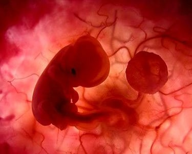 Durante el promer mes comienza a formarse la médula espinal y a diferenciarse la cabeza del feto, hacia el final del primer mes su corazón empieza a latir. En el segundo mes se empiezan a formar los rasgos faciales, y las extremidades. En el tercer mes pasa de llamarse embrión a feto, tiene piernas y brazos, quizás ya es posible distinguir su sexo. Ya mueve mucho sus brazos y piernas.